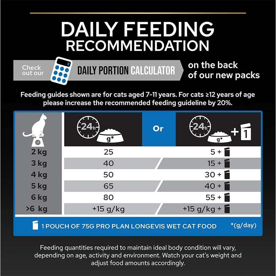 İdeal vücut kondisyonunu korumak için gereken besleme miktarları yaşa, aktiviteye ve çevreye bağlı olarak değişecektir. Kedinizin kilosunu izleyin ve mama miktarlarını buna göre ayarlayın. Temiz, taze içme suyu her zaman mevcut olmalıdır. Kedinizin sağlığı için düzenli olarak veteriner hekiminize danışın.
