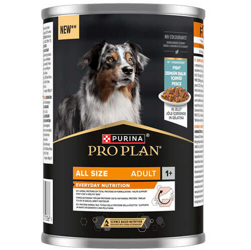Purina Pro Plan All Size Adult Fish in Jelly, köpeğinize aktif ve sağlıklı bir yaşam tarzı için ihtiyaç duyduğu her şeyi sağlayan lezzetli ve besleyici bir yaş mamadır. Purina Pro Plan Everyday Nutrition serisinin bir parçası olan bu mama, ana bileşeni balık olan yüksek kaliteli protein ve çoğu köpeğin sevdiği doğal ve güzel bir lezzet sunar.