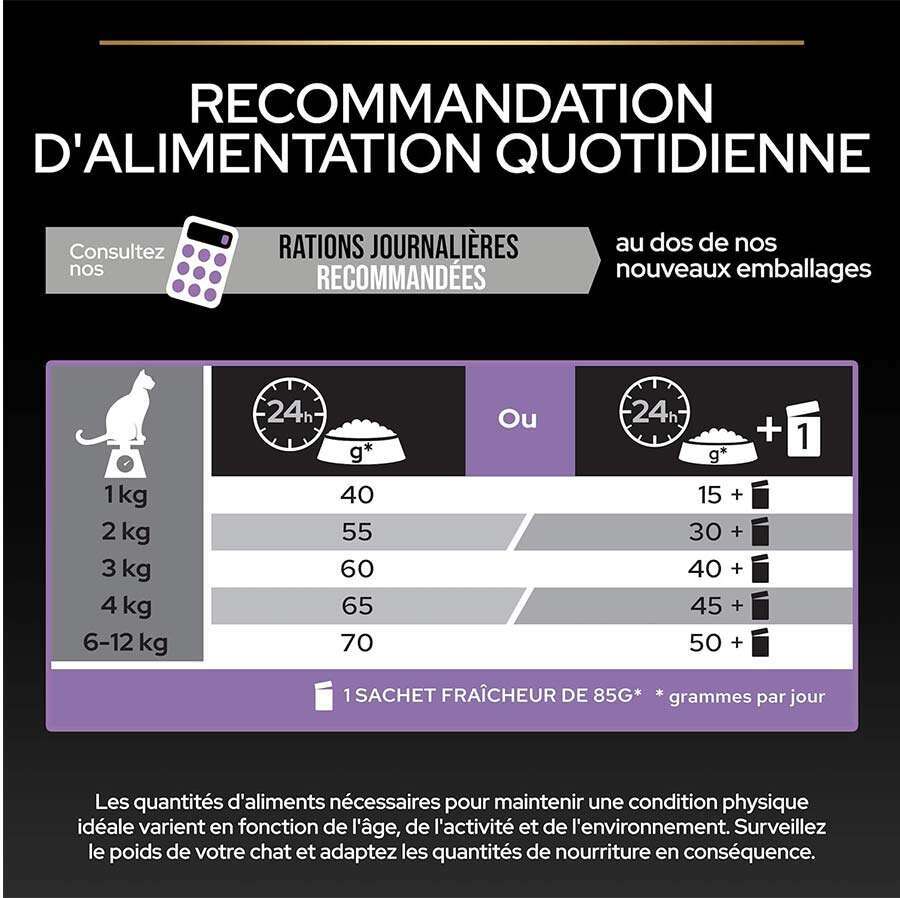 Ana besin değerleri*KuruNem6%Protein40%Yağ20%Omega-6 Yağ Asitleri3.03%Omega-3 Yağ Asitleri0.37%DHA0.05%Karbonhidrat27%Ham lif0.5%Kalsiyum1.28%Fosfor1.05%Vitamin A22676 IU/kgVitamin D31215 IU/kgVitamin E646 mg/kgVitamin C70 mg/kgTaurin2105 mg/kgMetabolik enerji (ME)14 kcal/g
