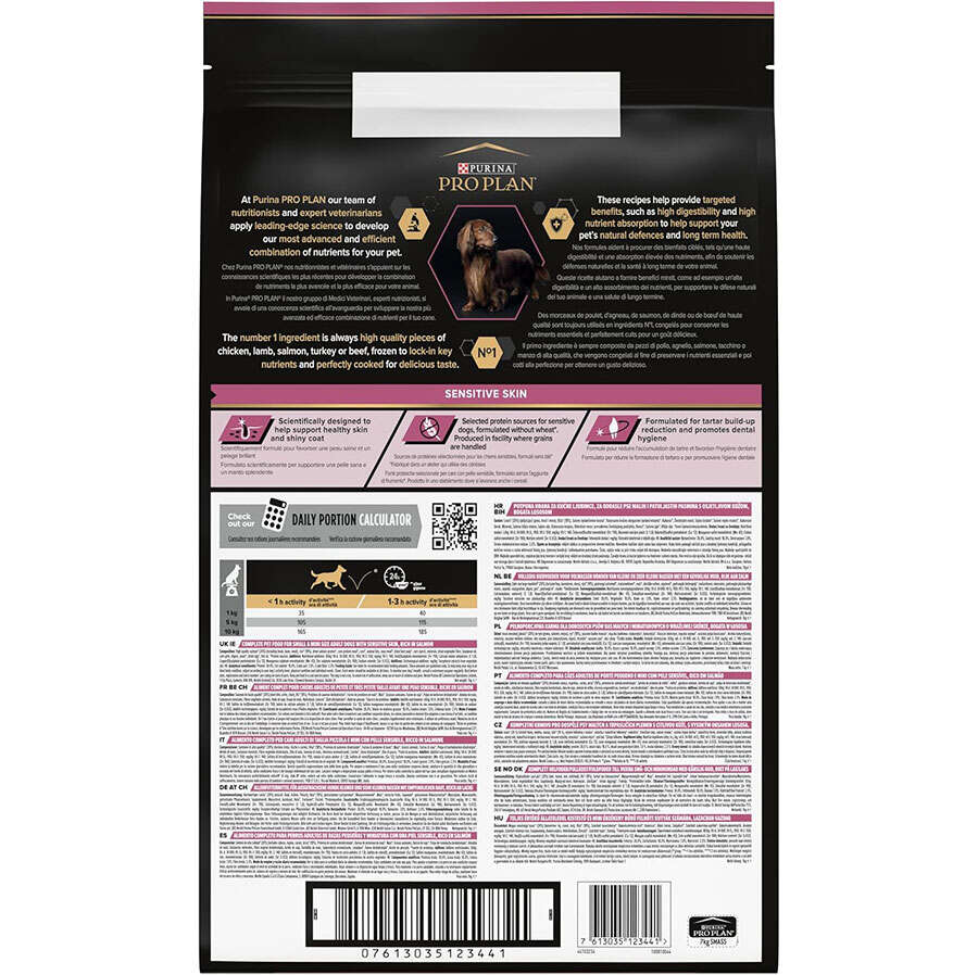 Hassas deriye sahip küçük ve mini yetişkin köpekler için bilimsel olarak formüle edilmiş tam kuru köpek maması. PURINA PRO PLAN Small & Mini Adult Sensitive Skin OPTIDERMA, köpeğinizin çok yönlü refahı için ihtiyaç duyduğu tüm besin maddelerini ve ayrıca sağlıklı bir deri ve parlak bir kürkü destekleyen ekstra besin maddelerini içerir.