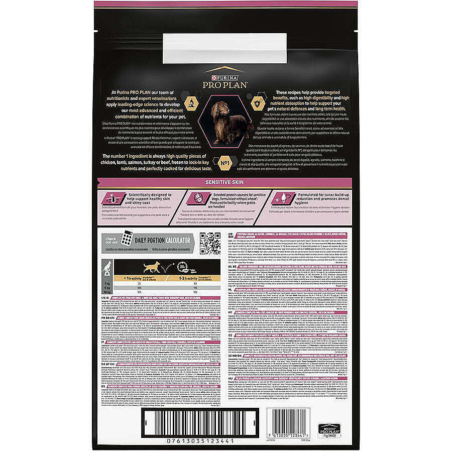 Hassas deriye sahip küçük ve mini yetişkin köpekler için bilimsel olarak formüle edilmiş tam kuru köpek maması. PURINA PRO PLAN Small & Mini Adult Sensitive Skin OPTIDERMA, köpeğinizin çok yönlü refahı için ihtiyaç duyduğu tüm besin maddelerini ve ayrıca sağlıklı bir deri ve parlak bir kürkü destekleyen ekstra besin maddelerini içerir.