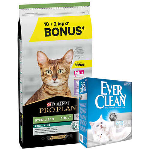 Pro Plan Kısırlaştırılmış Hindi Etli Kedi Maması 10 + 2 Kg (Toplam 12 Kg) + Everclean 10 Lt Kedi Kumu