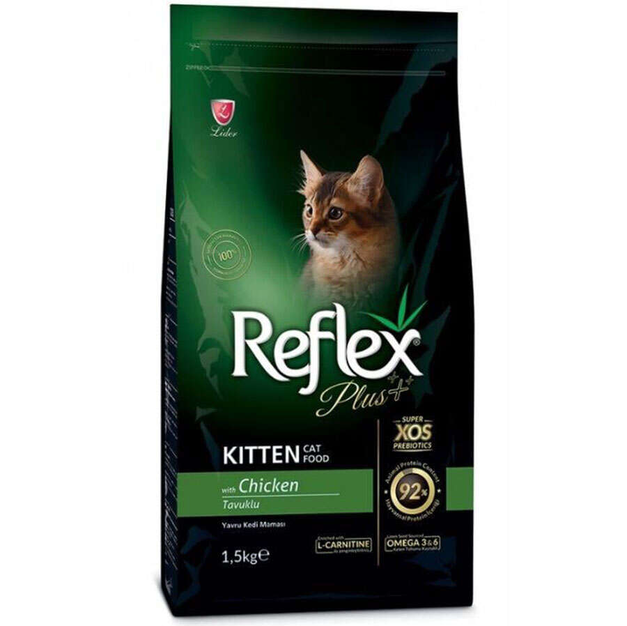 Reflex Plus Kitten Cat Chicken, tüm yetişkin ırklar için, günlük beslenme ihtiyaçlarını karşılamak üzere kedi/köpek beslenme uzmanları tarafından özenle formüle edilmiş tam ve dengeli, tavuk proteini içeren super premium kedi mamasıdır.