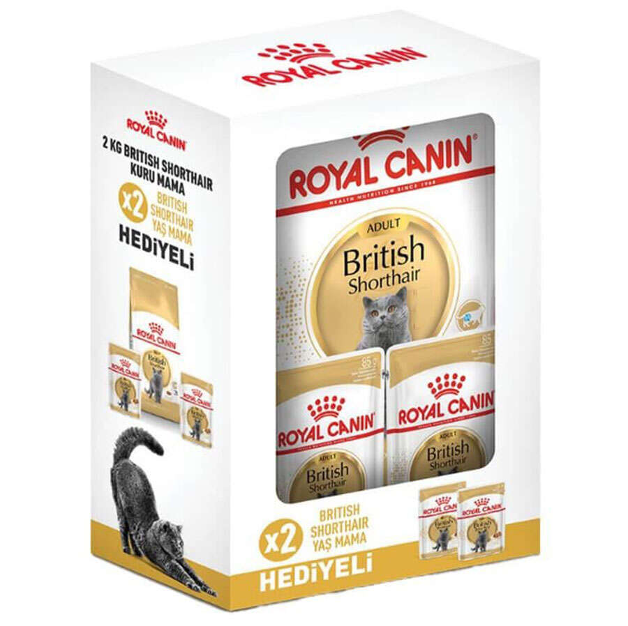 ROYAL CANIN British Shorthair, kas kütlesinin korunması için uygun seviyede protein ve bunun yanı sıra sağlıklı kemiklerin ve eklemlerin desteklenmesine yardımcı olan ve deri ve tüy sağlığı konusunda faydalı Omega 3 yağ asitleri içerir. 12 aylık ila 12 yaş arası British Shorthair ırkı kedilere yöneliktir.