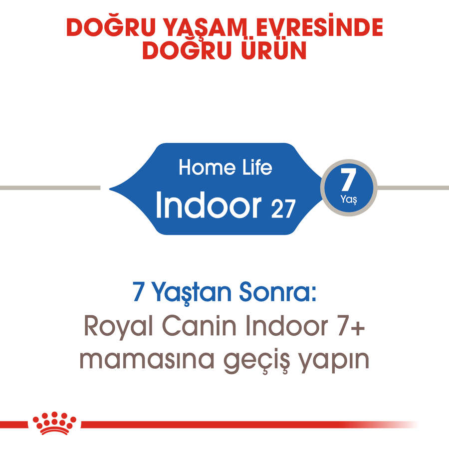 İç mekanda yaşayan kediler egzersiz yapmak yerine daha çok uyumakla, yemek yemekle ve tüylerini yalamakla vakit geçirir ve bu da sindirimin daha yavaş olmasına, yumuşak, kokulu dışkılara ve kilo almaya neden olabilir. Ayrıca tüylerin daha fazla yalanması daha fazla tüy yumağı oluşmasına yol açabilir. Indoor 27, iç mekanda yaşayan 1 ila 7 yaş arası kedilerin bu sorunlarına çözüm sunar.