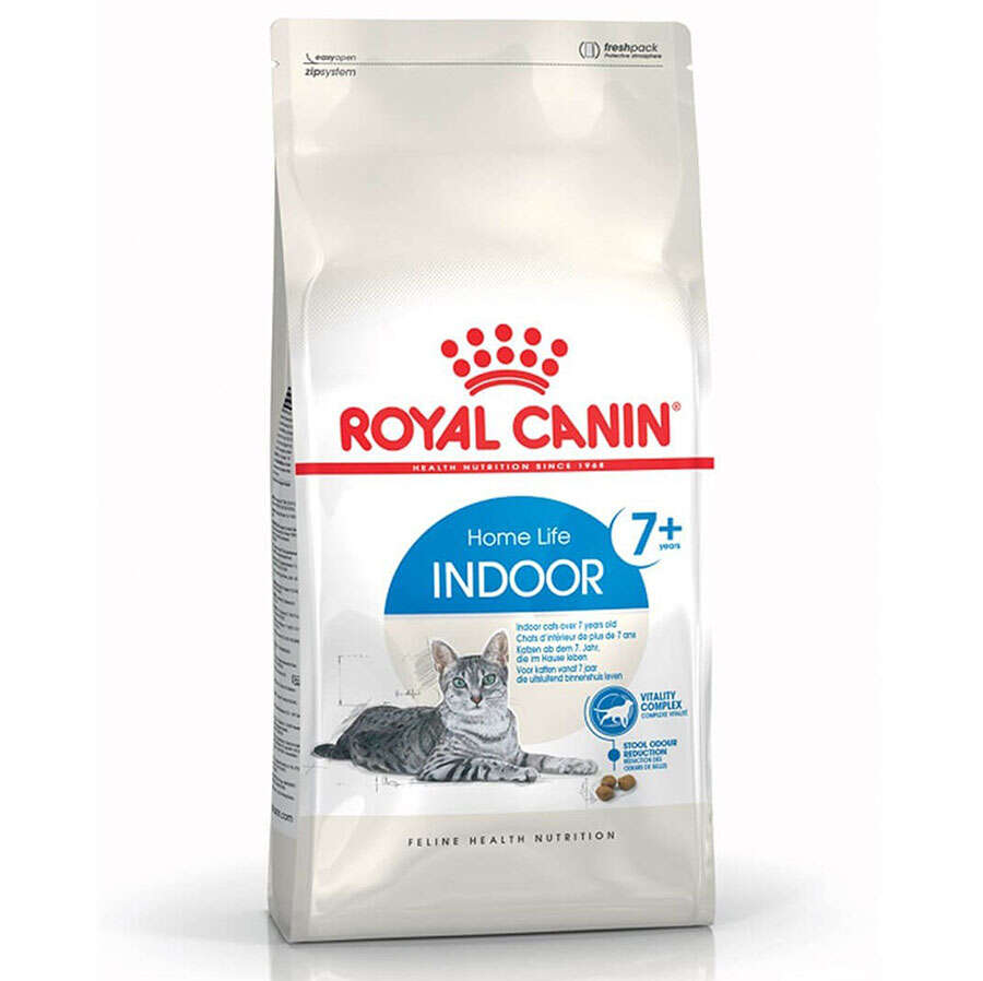 7 yaşından sonra kediler yaşlanmanın etkilerini hissetmeye başlar. Böbrekler, eklemler ve bağışıklık sistemi ilk etkilenenlerdir. Dişler ve diş etleri de hassaslaşarak çiğnemeyi güçleştirebilir. Uzun ve mutlu bir yaşam sürmelerinin garantilenmesi açısından, yaşlanan kedilerin doğru şekilde beslenmesi çok önemlidir. Indoor 7+, iç mekanda yaşayan 7 ila 12 yaş arası kedilere yöneliktir.