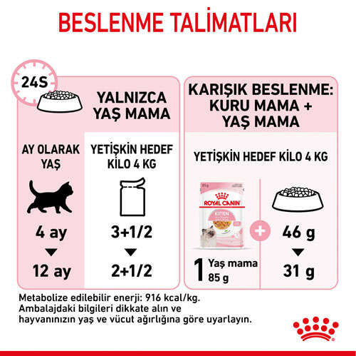 ROYAL CANIN Kitten Instinctive Jelly, özellikle kolay çiğneme için tasarlanmıştır ve anne kedilerin beslenmesi için de uygundur. Her kedinin farklı tercihlerine hitap etmek için ROYAL CANIN Kitten Instinctive, gravy yaş mama olarak da mevcuttur.