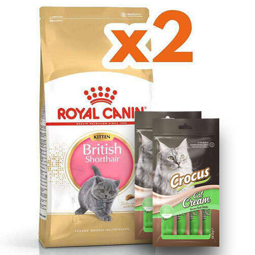 Royal Canin Kitten British Shorthair Yavru Irk Kedi Maması 2 Kg x 2 Adet + 2 Adet Crocus Cream Ödül 4x15 Gr