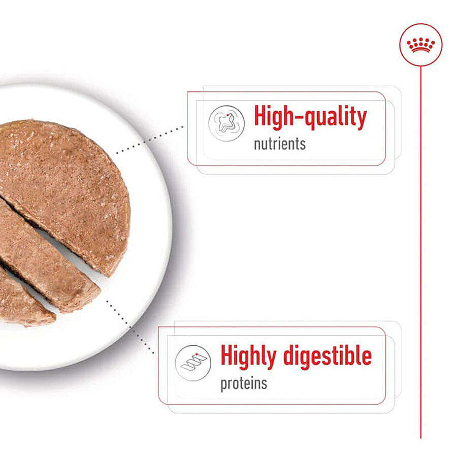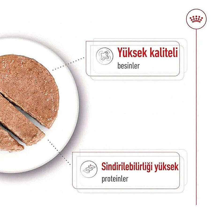 Bu ıslak mama, yüksek oranda sindirilebilir proteinler ve sağlıklı sindirimi destekleyen dengeli oranda diyet lifi içerir.
