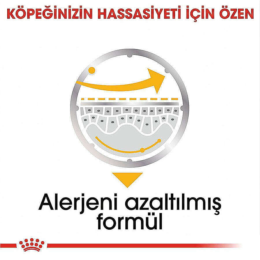 Deri tahrişi köpeklerin veteriner hekime götürülmesinin bir numaralı nedenidir. Deri hassasiyetleri ve aşırı kaşınma köpeğinizin derisine zarar verebilir ve hatta enfeksiyona yol açabilir. Deri hassasiyetlerinde destekleyici besin öğeleri içeren bir diyetle rahatlama sağlanabilir. ROYAL CANIN Dermacomfort Loaf, köpeğinizin derisinin rahatlatılmasına ve korunmasına yardımcı olan ve çevresel tahriş edicilere karşı deriyi koruyan Omega 3 ve 6 yağ asitleriyle zenginleştirilmiştir. ROYAL CANIN Dermacomfort Loaf’ta bulunan seçilmiş protein kaynakları gıda intoleransı riskinin azaltılmasına yardımcı olur. Bu lezzetli tarif, özenle seçilmiş düşük alerjen özelliklere sahip proteinler açısından zengindir. Söz konusu proteinler özel olarak köpeğinizin gereksinimlerine uygun olacak şekilde seçilmiştir. Dahası, köpeğinizin bakımını onu yüksek kaliteli besinlerle besleyerek yapmak yalnızca hassas derisinin bakımına yardımcı olmakla kalmaz, aynı zamanda deri ve tüy bütünlüğünün ve sağlığının korunmasına da yardımcı olur. ROYAL CANIN Dermacomfort Loaf tüm boy köpekler için uygundur. Dermacomfort beslenme programımız bu lezzetli yaş mamaya ek olarak kuru mama formunda da sunulmaktadır. Her ikisi de besinsel açıdan eksiksizdir ve birbirini kusursuz şekilde tamamlar. Kuru mamanın üzerinde lezzetli bir sos olarak yaş mamayı denemek istemez misiniz?
