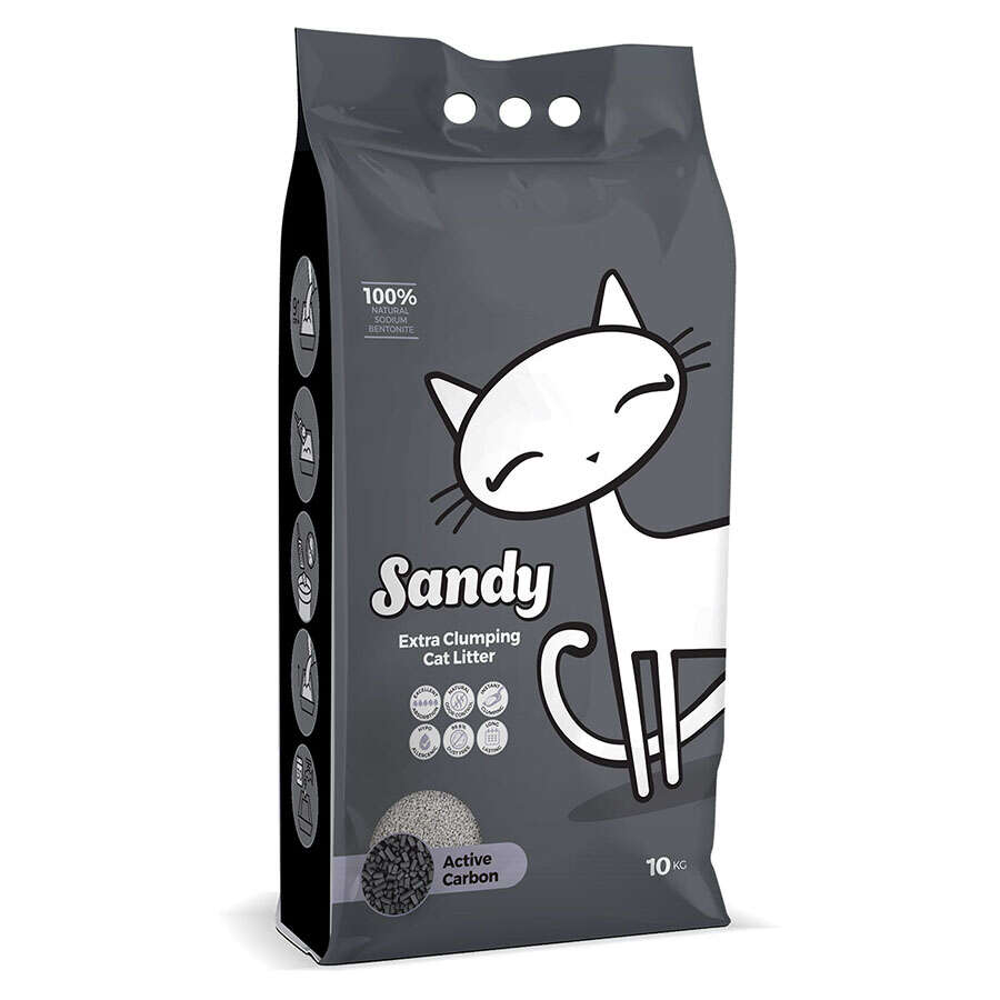 Sandy Aktif Karbon, çoklu gözenekleri sayesinde kedi idrar ve dışkısında bulunan amonyak kokusunu maksimum seviyede bloke eder, yaşam alanınızda oluşabilecek kötü kokuların önüne geçer.Aktif karbonlu topaklanan kum, doğal içerikleri sayesinde kedi dostudur.Diğer Bentonit türevli kumların aksine sodyum bentonit soda ile aktive edilmeden doğal olarak kendiliğinden topaklanarak kediniz için daha sağlıklı bir ortam sağlar.Ultra ince taneli granüller kedilerinizin patileri için yumuşak bir zemin oluşturur ve kuvvetli topaklar oluşturarak topakların en etkin şekilde alınmasını ve kumun temiz kalmasını garanti eder.