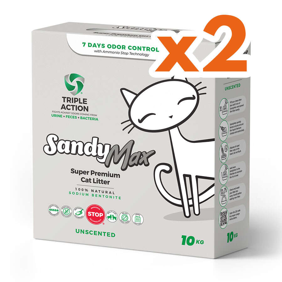 Sandy Max Triple Action Aktif Karbonlu Tozsuz Topaklanan Bentonit Kedi Kumu 10 Lt x 2 Adet