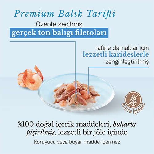Besinler dikkatli işlenmesiyle elde edilmiştir.Yüksek kaliteli ıslak kedi mamasıdır.