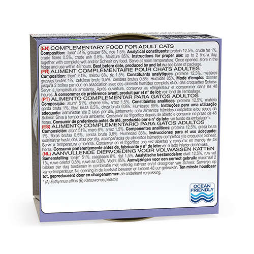 ​Bu Schesir tarifi, çok aranan bir malzeme olan orfoz balığının eklenmesi sayesinde daha da iştah açıcı ve enfes hale getirilen lezzetli ton balığı filetolarına dayanmaktadır . Jöle formatında olan bu tabak , kasede daha kompakt bir kıvamla birleşen deniz aromalarını tercih eden kedileri memnun edecek şekildedir.
