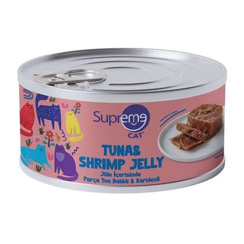 • Supreme Cat Jöle İçerisinde Parça Ton Balıklı & Karidesli, yetişkin kediler için özenle hazırlanmış, lezzetli ve besleyici bir yaş mama seçeneğidir. Her öğünde kedinizin sağlığını ve mutluluğunu ön planda tutar.