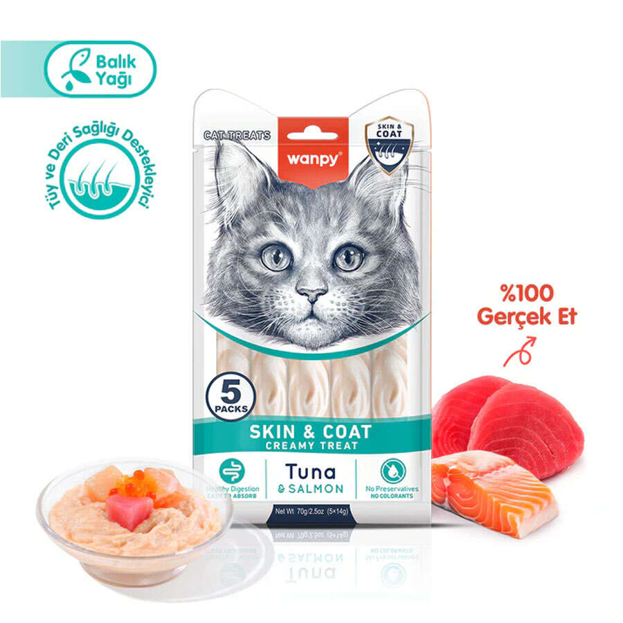 Wanpy Tüy ve Deri Sağlığı Destekleyici Fonksiyonel Kedi Kreması, ton balığı ve somon gibi yüksek kaliteli protein kaynakları ile kedinizin deri ve tüy sağlığını desteklemek için özel olarak hazırlanmıştır. İçeriğinde bulunan linoleik asit (LA), EPA ve DHA gibi değerli yağ asitleri, aşırı tüy dökülmesini azaltmaya ve sağlıklı bir deri yapısının korunmasına yardımcı olur.