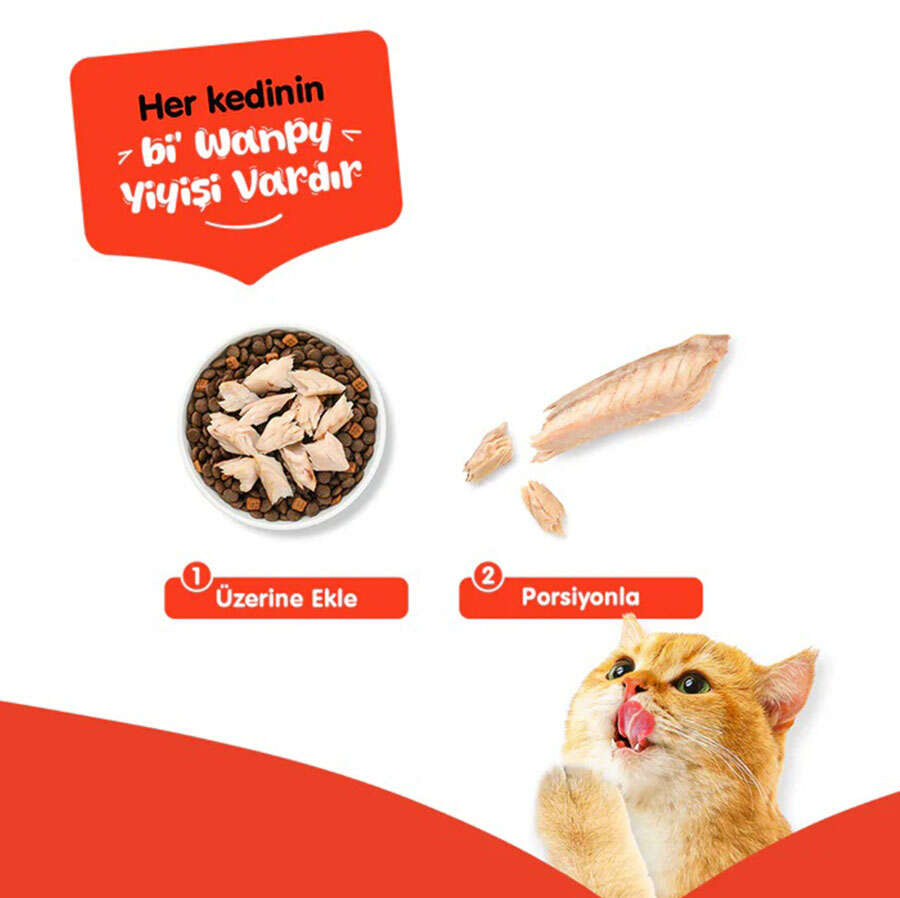 Denizlerin lezzet deposu kedinizin tabağında! Wanpy %100 Doğal Bütün Uskumru Fileto, okyanusların en kaliteli uskumru balıklarından özenle seçilerek hazırlanmıştır. Yapay, birleştirilmiş veya işlenmiş bir et ürünü değildir; paket içerisinde %100 gerçek ve bütün uskumru filetosu bulunur.