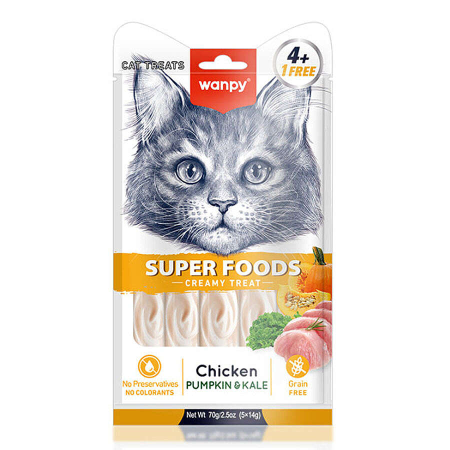 Wanpy Balkabağı & Karalahanalı Süperbesinli Kedi Kreması, %100 gerçek et içeriği ve özenle seçilmiş süper besin kombinasyonu ile geliştirilmiştir. Tavuk bazlı zengin formülü; balkabağı ve karalahananın doğal besin değerleriyle desteklenir.
