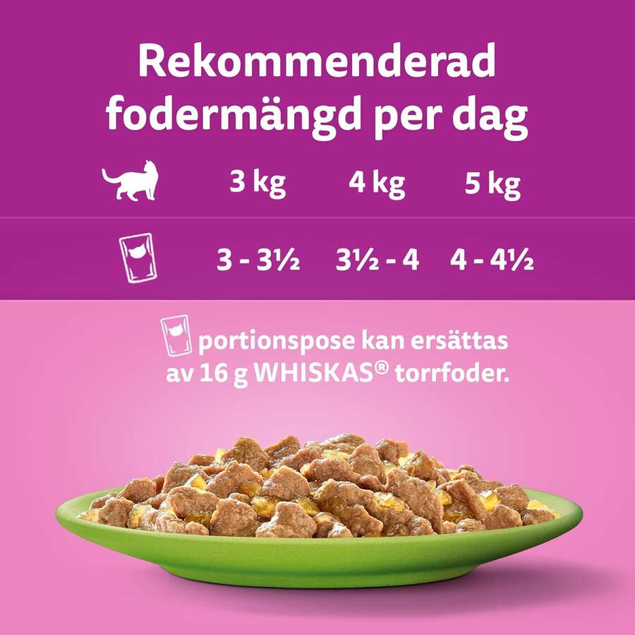 85 g yaş mama, 16 g WHISKAS® kuru mama ile değiştirilebilir.
