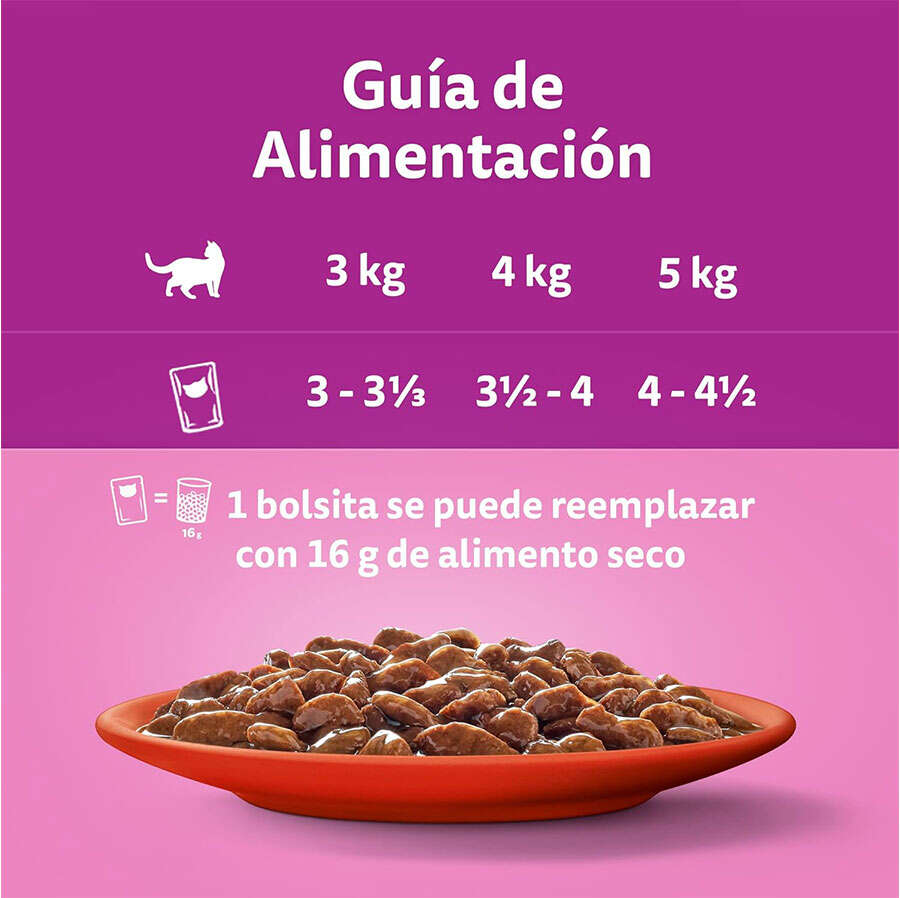 1 Pakette 4 ayrı lezzet bulunduran whiskas pounch.2 adet sığır etli, 2 adet tavuk etli 2 adet lezzeti bulunmaktadır.