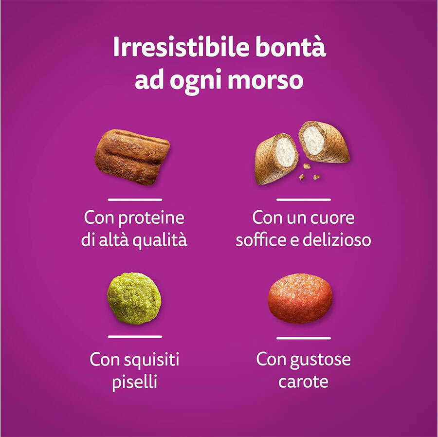 12 ay üzeri tüm ırklar için ihtiyaç duyduğu bütün besin maddelerini içeren, hızlı ve dengeli bir gelişme sağlamanın yanı sıra kolay sindirilebilir yetişkin mamasıdır. İçerdiği kalsiyum ve fosfor kemik ve diş yapısının güçlenmesine, protein ise güçlü bir kas gelişimine yardımcıdır. İyi görme gücü için gerekli olan taurin ve A vitamini ile zenginleştirilmiştir. Tazeliğini koruyan fermuarlı poşet içerisinde kullanımı kolay ambalajlıdır.Konserve İçeriği;Sığır eti, et ürünleri, bitkisel protein ekstratı, tahıllar, sıvı ve katı yağlar, öğütülmüş havuç ve bezelye, taurin, vitamin ve mineraller.