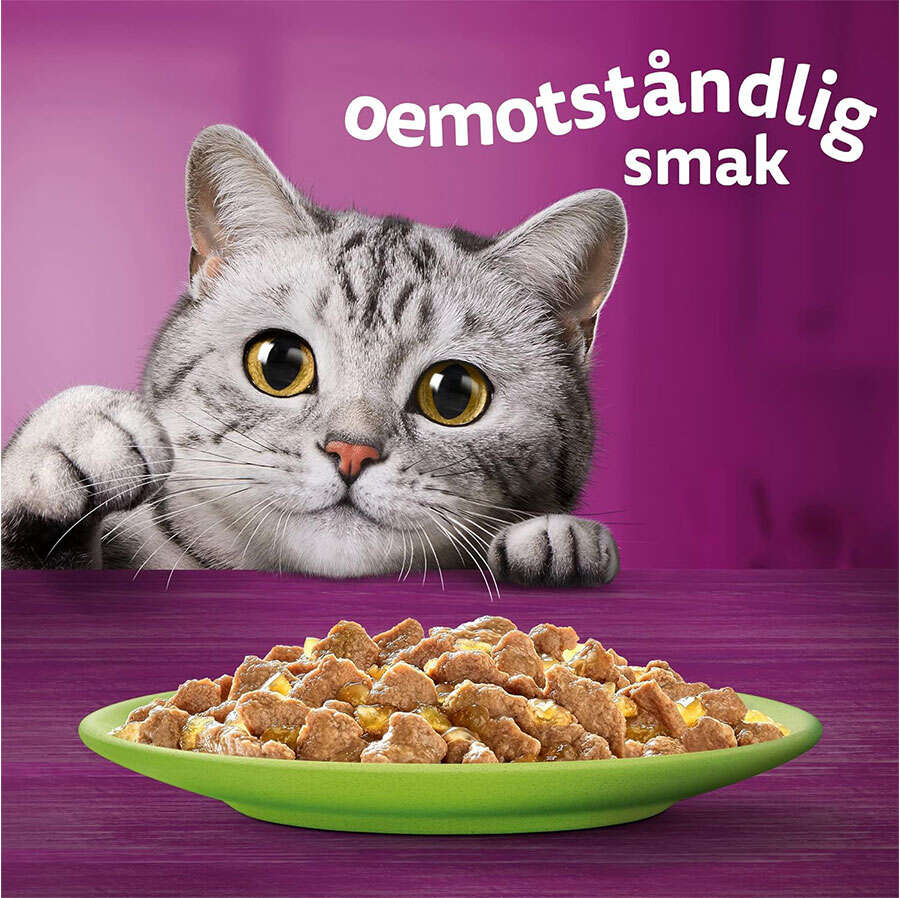 Sos içinde hazırlanan formülü ile kedinizin günlükihtiyaçlarının 100%'ünü karşılar. Kediler için daha fazla öğün çeşidi sunar.Sebze katkıları, çeşitlilik ve sağlık algısını güçlendirir. Sağlık, keyif vekalite kriterlerinde yüksek beğeni puanları ile mükemmel ürün performansısunar.