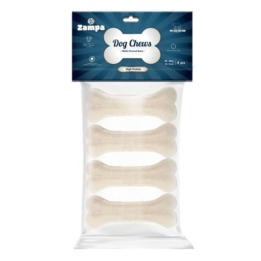 Zampa Beyaz Press Kemik Köpek Ödülü, 30-40 g ağırlığında dört adet lezzetli ödül içeren pratik bir pakettir. Özel olarak formüle edilmiş bu kemikler, köpeğinizin diş sağlığını desteklerken, hem lezzetli hem de besleyici bir atıştırmalık sunar. Eğitim sırasında veya ödül vermek istediğinizde ideal bir seçimdir. Köpeğinizin mutlu olmasını sağlayacak enfes bir ödül!