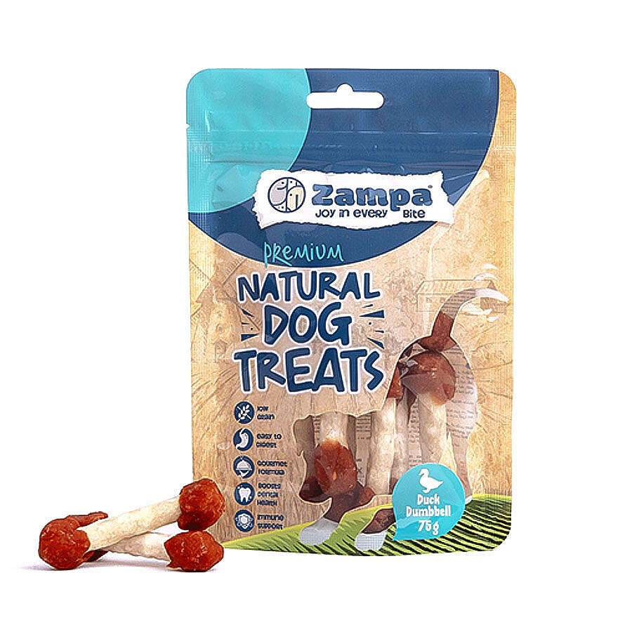 Köpeğiniz için hem lezzetli bir atıştırmalık hem de oyalayıcı bir kemirme aktivitesi mi arıyorsunuz? Zampa Duck Dumbbell (Ördekli Dambıl), yüksek kaliteli ördek eti ve doğal ham derinin mükemmel birleşimidir.